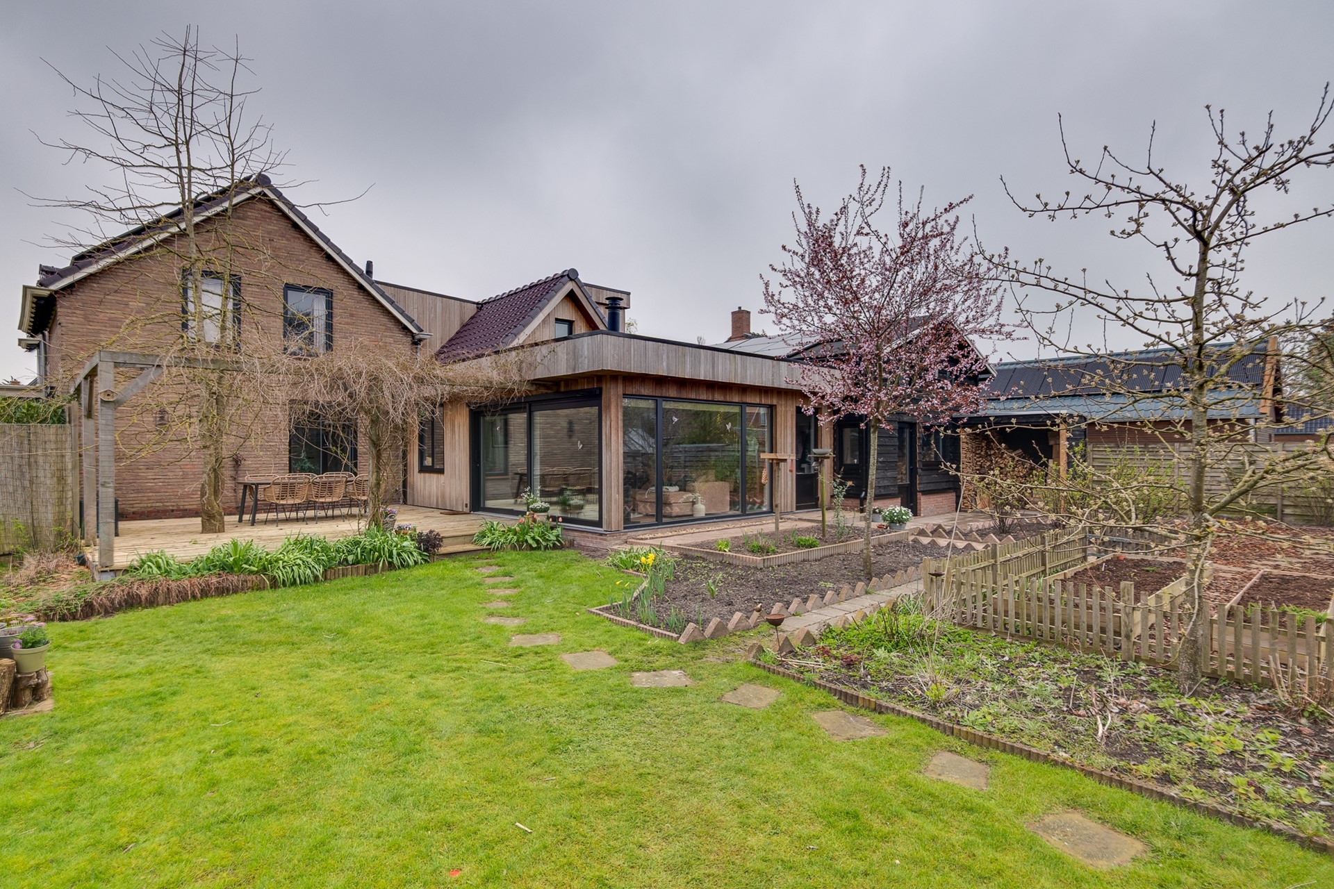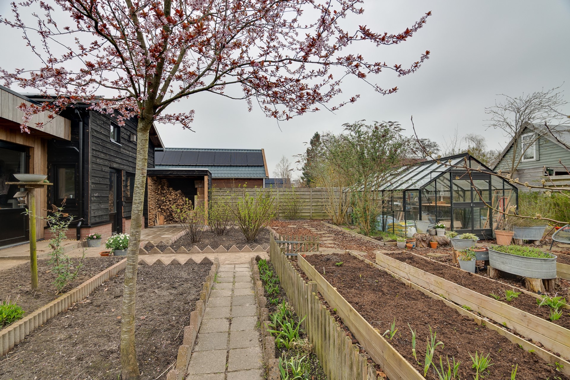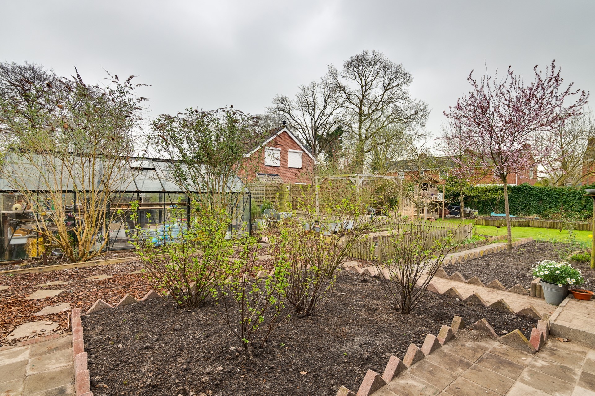 De goed onderhouden tuin aan zowel de voor-, zij- als achterzijde van de woning is de kers op de taart. Groene gazons, kleurrijke borders en diverse (fruit) bomen zorgen voor een heerlijk rustige sfeer. De achtertuin is afgesloten en beschikt over een grote tuinkas en moestuin. Er zijn twee ruime terrassen waarvan 1 met toegang tot de tuinkamer. Hier zit je het hele jaar door heerlijk buiten; in de zomer geniet je er van de mogelijkheid om buiten te dineren, in de lente en herfst zit je er beschut met een kop koffie of goed glas wijn. Een perfecte plek voor lange avonden met vrienden of juist een rustig moment voor jezelf.