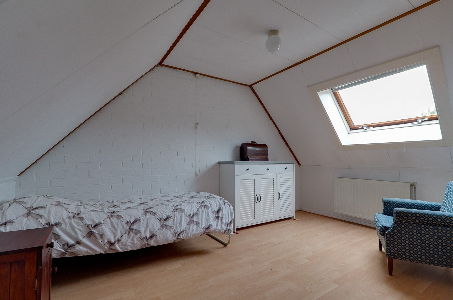 Eerste verdieping appartement: een slaapkamer van ca. 9m2 en een zolder met voldoende ruimte om nog een slaapkamer te realiseren.